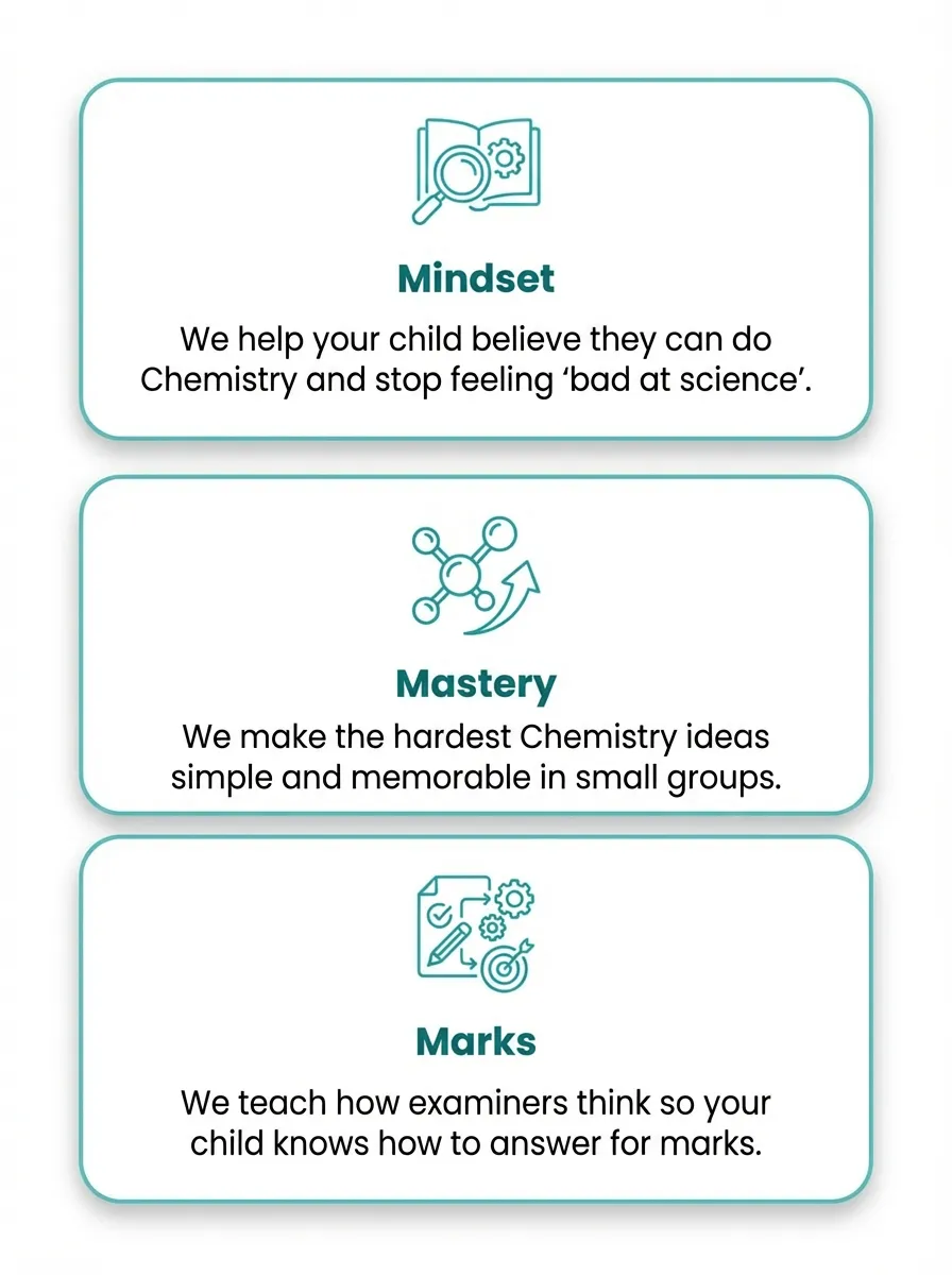 Once there’s a clear plan, consistent teaching and exam-technique training, Chemistry stops feeling random and starts to make sense.